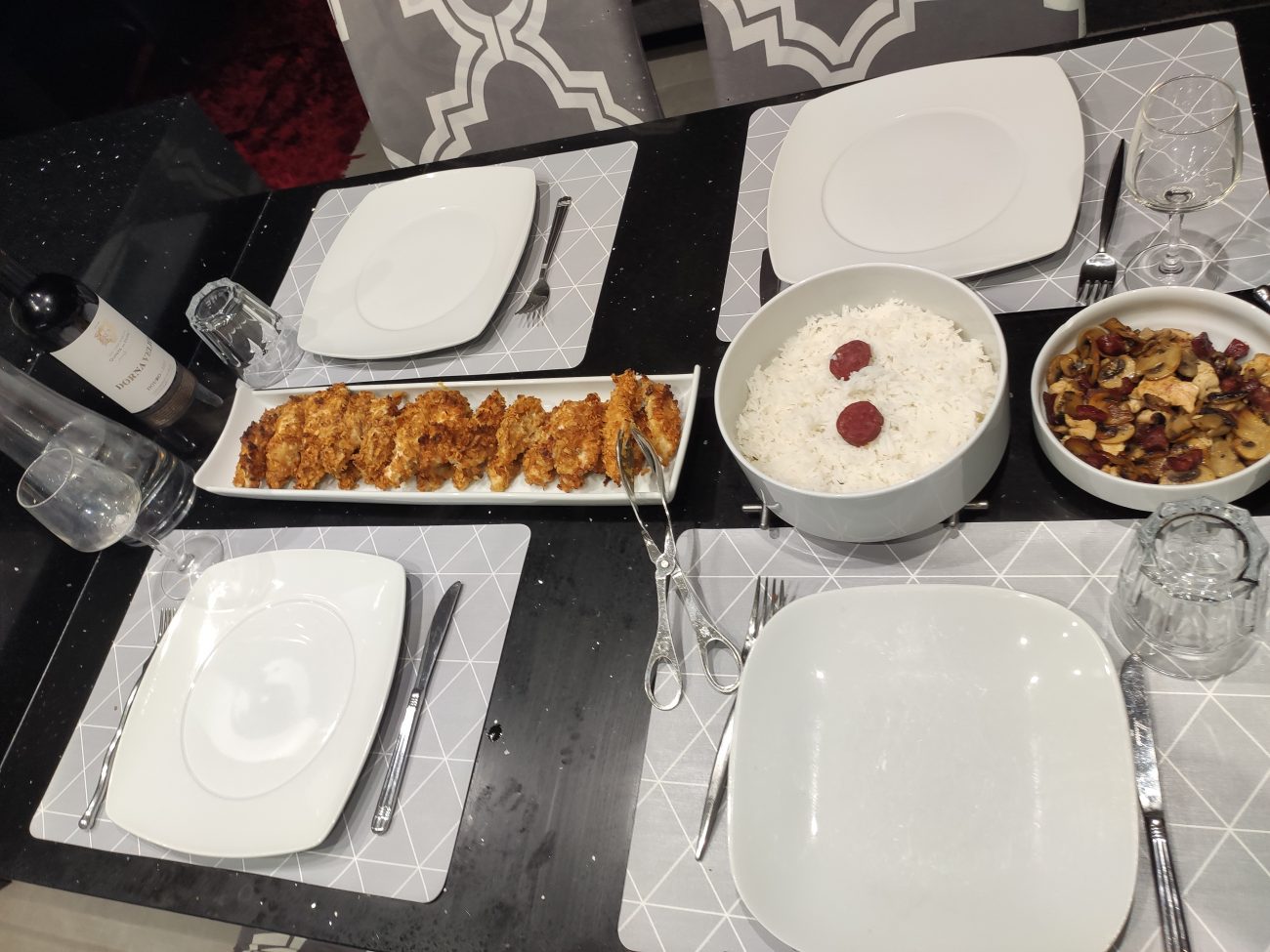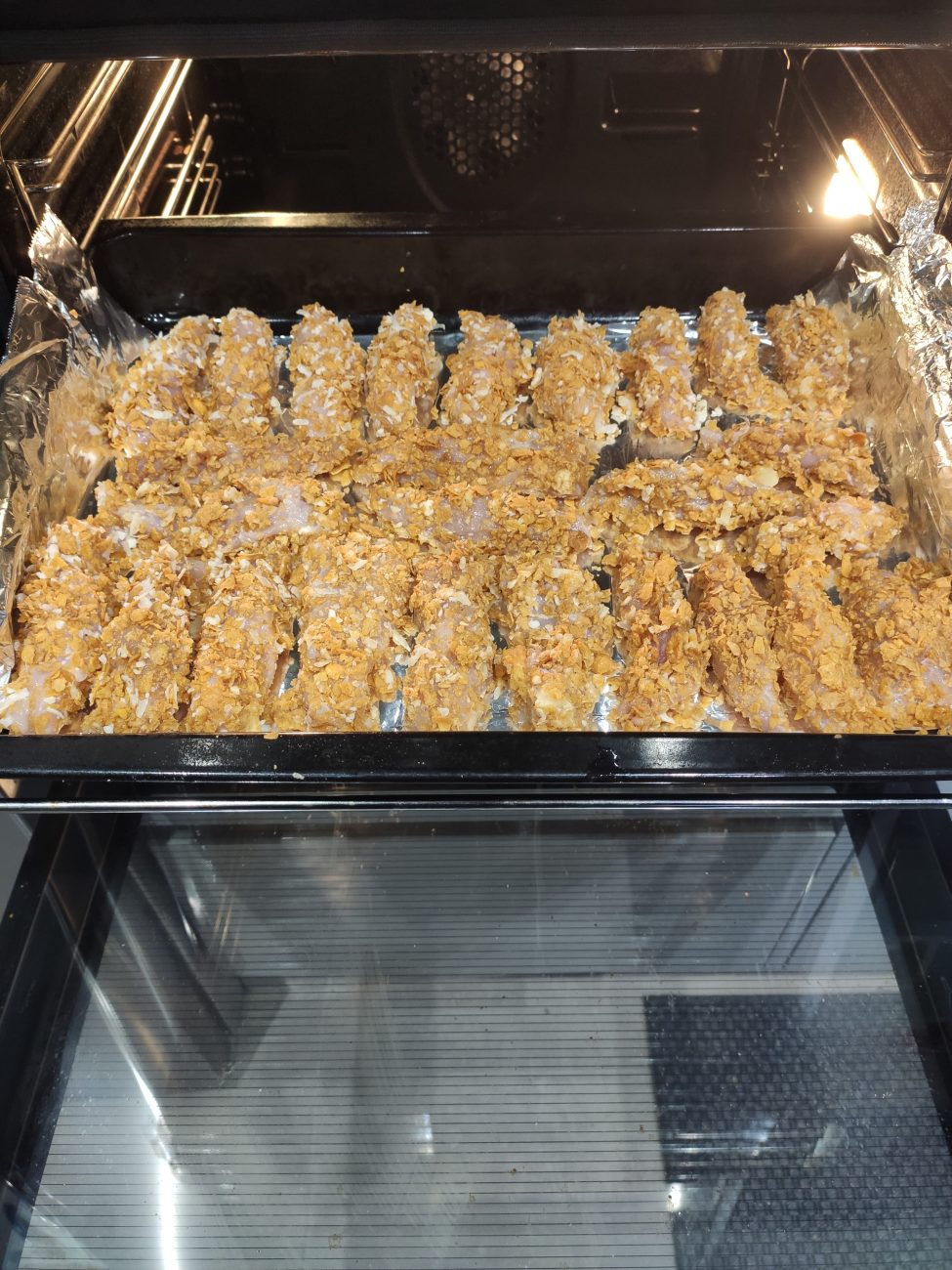 Corta os peitos (4un) em tiras largas e tempera com sal (qb), alho em pó (qb) e em pimenta (qb) e reserva (cerca de 15 min). |